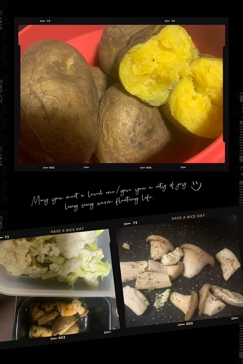 - 夜 キノコ汁、インカのめざめ(じゃがいも)マヨ付き、カリフラワー